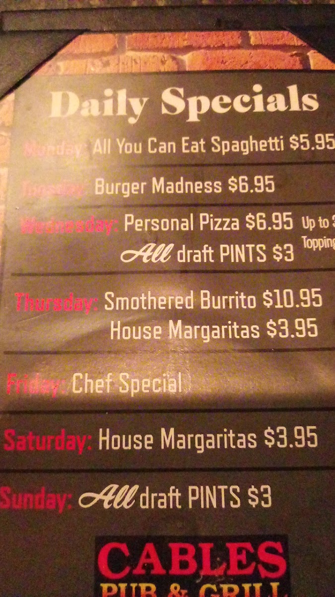 The Sides & Extras section complements any meal with treats like crispy hash browns or buttermilk biscuits to enhance your dining experience. Customers rave about the inviting atmosphere, attentive service, and consistently great food. As one patron noted, “Cables is undoubtedly amazing.” Whether you’re after a savory burger or a comforting pasta dish, Cables Pub & Grill guarantees satisfaction every visit. Don’t miss the chance to indulge—deliciousness awaits!